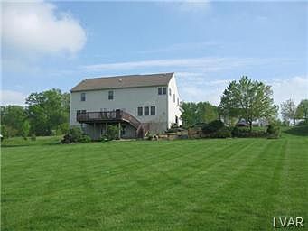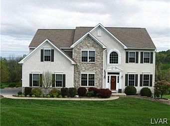 You will love the views from this well maintain colonial with 5 bedrooms and a fully finished walk out basement. The two-story foyer greets guests with hardwood and tile flooring running though out the first floor consisting of an office, formal dining room, kitchen, breakfast area, family room with gas fireplace, powder and laundry room. Off the large kitchen with granite counter tops, stainless steel appliances and desk area is a sliding door leading to the trex deck with long reaching views. On the second level, you will find the gracious master suite with sitting room, walk in closet and master bath with 2-person tub, oversized shower, double vanity and tile floors. Four more bedrooms and a hall bath complete this level. The large finished basement with spay foam insulation to keep energy costs low, provides room for entertaining areas, exercise, music, etc includes a half bath and a full walk out to the paver patio. Convenient to the Lehigh Valley, I78 and NJ.
