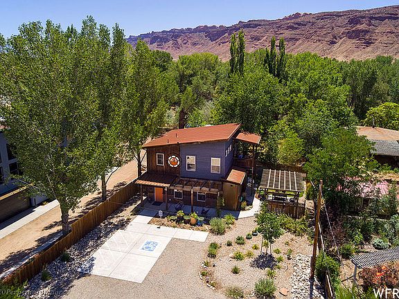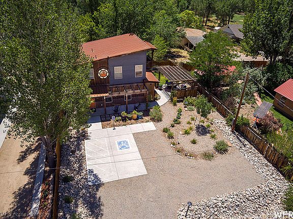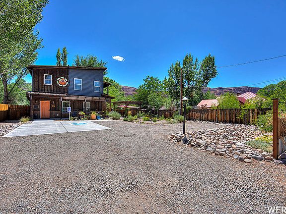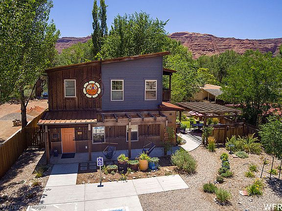 MOAB DIGS! Lodging designed for living. Located in Moab's commercial district, this hidden gem offers privacy, desirable green and crafty charm. Two independent units supply full function stays with complete kitchens, whimsical living areas, cozy beds, private laundry and dedicated outdoor space. The lofty upstairs is Moab's only Air BnB Plus, with one bedroom and Portal views off the private balcony. Fully accessible main level studio offers a back yard private retreat, with a canopy of mature trees and established deer trails. The wood and metal sided building is hip with Insta-worthy style! A shared pergola allows for outdoor grilling, lounging and entertaining. Walk to galleries, shops, artisan restaurants and brew pups. Just 2 miles from Arches National Park and the Colorado River- hiking, biking, rafting are all available with ultimate convenience. 5 star ratings and excellent reviews, the Digs stands out in the Moab nightly rental scene with repurposed historic wood finishes, hand-made clay tiles, antique pieces and local art.