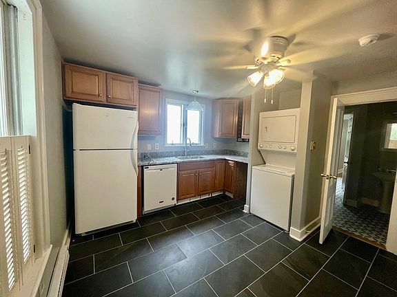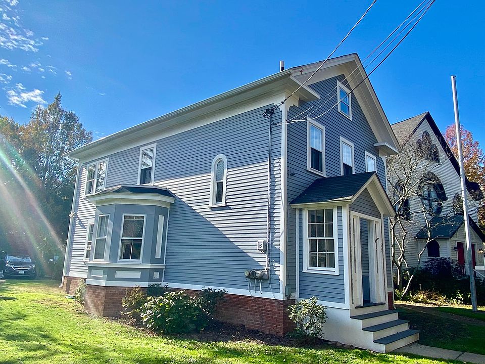 Just a block from the historic Guilford center, there is access to restaurants, shops, public library & the beautiful Guilford Green. The town marina w/ restaurants & stunning views and the town beach are about a half mile directly south. Since the commuter train station is only two blocks from this property, it is a perfect set up for someone to use the house as a weekend get-away from the city. The first-floor apartment has a Spacious Living room with a south facing bay window, a large bedroom, an eat-in kitchen, a separate Dining Room (or office or Guest Room) and a full bath with both shower and separate jetted tub, large walk in closet. There is off-street parking for three cars. There is a covered deck in the back, access via the kitchen. The kitchen features granite countertops and is fully applianced (new dishwasher and microwave) and has a stack washer/dryer. There are oak floors with a newly tiled kitchen and entry way. Ceiling fans provide cooling in summer. The second floor apartment has private access. The exterior of the house was completely renovated in 2022. The basement has a concrete floor & has been compartmented for individual unit storage. The yard is level & has shade trees to the rear. Built in 1850, this home has had many "lives." Originally a single-family home the house was, for decades (until the mid 1960s), the parish rectory for the church that was next door. Then the church and rectory moved to its current location on the Guilford Green, and165 Whitfield Street was renovated into two apartments. 1987-88 New Wiring, New Plumbing, New Insulation. Water and trash removal included. Landlord responsible for water, trash, landscaping and snow removal. Tenant responsible for utilities and internet. Security Deposit due upon signing. No smoking. Pets are negotiable on a case by case basis.