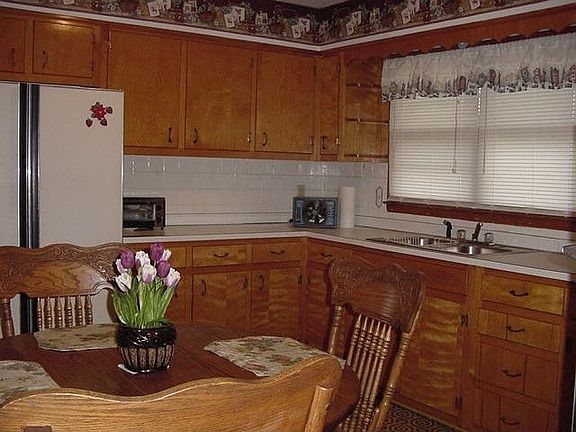 3Br/1Ba Bedford stone ranch over unfinished basement w/utility garage door access. Entertainment center.