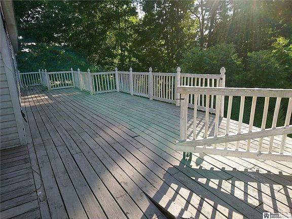 This rural country living home has large rooms- all 4 bedrooms have ceiling fans. And 2 full bathrooms. The first bedroom has a large en suite bathroom with a large soaker tub and has a door leading out to the large deck that wraps around one side and the back of the house. The home features a large Country kitchen with a large island, and a pantry and sliding glass door that enters the large deck. The living room is large 23X14.5 ft. With the dining room of equal length right beside. Home has had some recent upgrades including: some new water pipes, some new flooring, This large rural home has a lot of potential. A little TLC and put your own touches on this home living in the quiet of the rural area just north of the PA border.