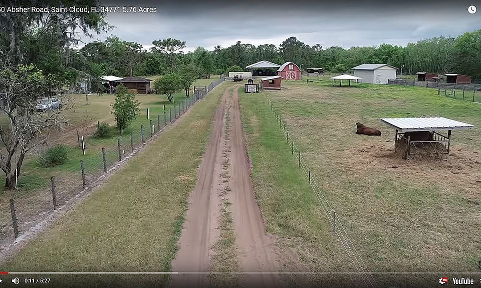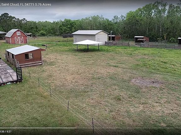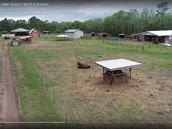 3 Bedroom 2 Bath brick home situated on 5.91 acres of country living. Zoned agriculture so bring the cows, horses, and enjoy country living. Pond with fountain and dock. Barn, pole barn, shed, and fruit trees. Property is fenced. An additional parcel adjacent is for sale and that is 5.10 acres.This property is 5.76 acres and when combined with the next door lot of 5.10 acres one could have 10.86 acres. We have a barn, pole barn, incredible concrete garage, multiple enclosures for animals, fencing and cross fencing, both lots are connected via gates, a brick house, feeding stations, watering stations, and a great location. Photos and Drone include 1650 and 1800 Absher Road Saint Cloud, Fl. 34771. Both to be sold together.