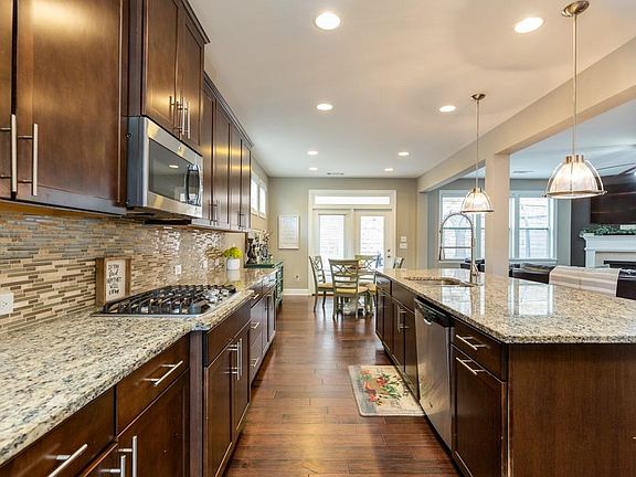 - Kitchen Features: Breakfast Bar, Cabinets Stain, Eat-in Kitchen, Pantry, View to Family Room, Stone Counters, Kitchen Island, Pantry Walk-In, Breakfast Room, Solid Surface Counters