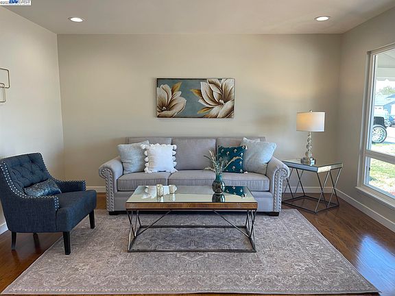 This beautiful home has been professionally and completely renovated. New PG&E 200 amp panel including (2) 100 amp sub-panels plus all new wiring throughout the home. New roof and gutters, new interior texture and paint, new exterior paint, new back sliding glass door. Family room has been updated with new high quality vinyl flooring. New lighting throughout the home including ceiling fans in the bedrooms and recessed lights in kitchen, dining, living room and hallway, plus new exterior lighting. New solid core shaker style doors throughout, even new shaker style closet doors. New kitchen with white shaker style cabinets, quartz counter tops, Kohler faucet, and high end appliances. Both bathrooms have been renovated including new quartz shower and bath surrounds, new tile flooring, new vanities and toilets. Original hardwood floors in dining room, living room, hallway and bedrooms are still as beautiful as when the home was built. The front yard has a new custom color cement walkway and new "Water Wise" landscape with automatic drip lines. Backyard is ready for your own touches to be added to the existing patio and landscaped area complete with a vegetable garden box with tomatoes ready for you to pick and eat. Home has existing central heat and dual paned windows.