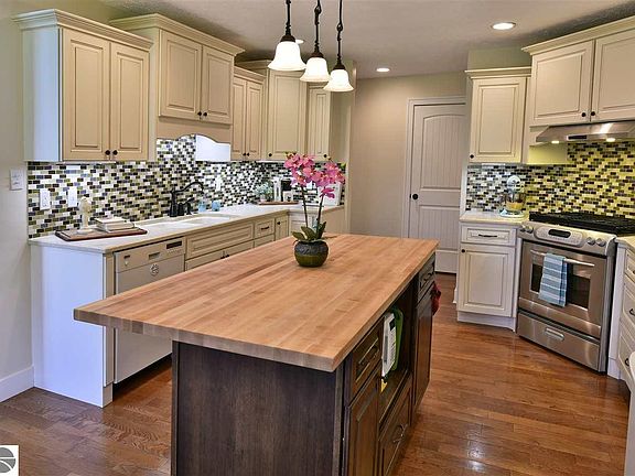 Your cares will be left behind when you pull onto your driveway and drive through the canopy of trees that lead to your beautiful, luxurious home. You'll never want to leave the classic elegance of your spacious sanctuary nestled in the woods. Set deep into a beautifully landscaped tree lined lot, your home affords incredible privacy but also offers a gorgeous open back yard. Your home and yard are perfect for entertaining or just relaxing by the fire. Your home provides tremendous flexibility with a second bedroom on the main floor that could be used as a den, office or craft room. The formal dining room could also be used as a study or for a library. There's also a huge bonus room upstairs that can serve as a sixth bedroom, guest room, rec room or theater room. The downstairs is partially finished with a large amount of open space that can be converted to additional living space and already has four egress windows to allow for any use you may need. The first floor master suite is an inner sanctuary with direct access to the perfect outdoor space to enjoy a warm cup of coffee or tea in the morning. Enjoy the natural beauty of Northern Michigan as you take long walks through the trails in the 80 acres of State Forest just across street. You will love your truly exceptional home that gracefully manages to be both comfortable and wonderfully elegant.