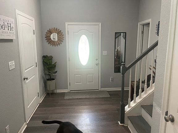 Spacious 4 bedroom, 2.5 bath house with a large fenced in backyard. Built in 2023, this 1,944 sq ft home with a 2 car attached garage sits on a 1.16 acre lot. The main floor has the living/dining room, kitchen, half bath and laundry room with washer and dryer. The 2nd floor has the 4 bedrooms and two full baths. The master suite has a walk-in closet and bathroom with a dual vanity and large shower. Out back is a large patio that is shaded in the afternoon, perfect for BBQing, enjoying the spacious fenced in yard surrounded by trees, and watching the parachuters from Sky Dive Suffolk. This property features a kitchen with stainless steel appliances and LVP flooring throughout the whole house. The house is on a well and septic, renters are responsible for electric and internet, landlord pays for trash. Minimum lease is 1 year, 2 year plus preferred. Renter is responsible for utilities (electric and internet, house is on well and septic). No smoking inside the home or garage.