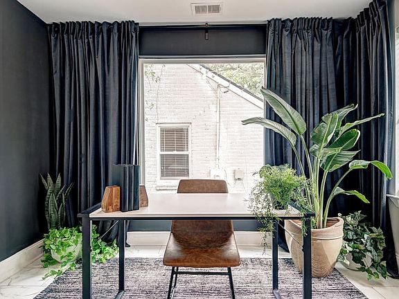 Welcome to your dream home in the heart of Atlanta's Historic Westview community! This 3-bedroom, 2-bathroom bungalow is not just a house, it's a whole vibe. Prepare to be enchanted by the perfect blend of industrial and farmhouse elements, with black metals and wood creating a truly unique aesthetic. As you step inside, you'll immediately be captivated by the open concept design that invites natural light to dance across every corner of the home. The dark grey velvet curtains add a touch of elegance, elevating the space to a whole new level. The master bedroom is a sanctuary of its own, featuring beautiful barn doors that lead to a spacious stand-up shower. The true allure of this property lies in its outdoor oasis. Step onto the deck, adorned with lush faux grass and twinkling string lights, creating a truly magical atmosphere. This unit includes a king bed, a queen bed, and a full bed, along with a set of sheets, white towels in both bathrooms, hand towels, and washcloths. The kitchen is equipped with essentials, a coffee maker, a tea kettle, and a blender. For entertainment, there are TVs available, and additional amenities include robes and more. Guest will have access to parking for drivers. Westview is a historic "residence park" neighborhood just five minutes southwest of downtown Atlanta. Originally called Westwood Park and then West End Park, the Westview neighborhood is one of Atlanta's last hidden gems inside the city limits. This location is 4.1 miles away from Downtown Atlanta, 7.2 miles away from Midtown Atlanta, 7.1 miles away from Ponce City Market, 11 miles away from Buckhead, 14 miles away from Truist Park, and 18 miles away from Perimeter Mall. Guests must be at least 21 years or older to rent this space. We verify all guests ahead of their stay, and as part of the verification process, you will be asked to provide a copy of your official government-issued photo ID and confirm your contact information. The home includes a noise and smoke detector. The noise detector allows us to respond to noise nuisances and is 100% privacy compliant, only measuring noise levels without recording conversations. The smoke detector detects smoke as well as marijuana and cigarette smoke. Tampering with either device is strictly prohibited and will result in a $500 fine on the initial violation, and up to $1,000 on the second, with guests subject to immediate eviction without any refunds. Guests will also be asked to sign a short-term rental agreement, agreeing to our rules and policies. The office space is the perfect spot for your creative genius to thrive. With black walls, a large window, and lush green plants, inspiration will come knocking at your door.