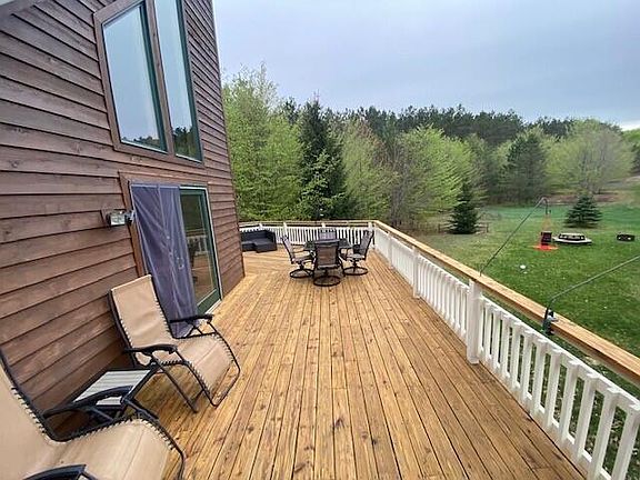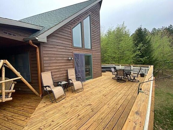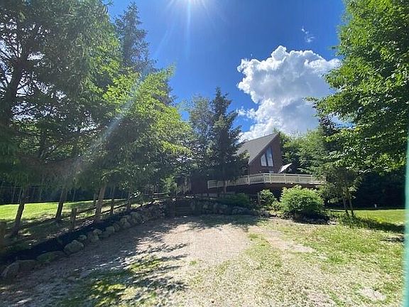 This gorgeous 3 bedroom 2 bath home is tucked down a private winding, wooded drive on 40 secluded acres and surrounded by thousands of acres of federal land. The main floor boasts 25 foot vaulted ceilings, beautiful acacia hardwood floors and has a flowing open design. It features a floor to ceiling gas fireplace with plenty of light and views from the abundance of windows and an expansive walkout deck.The main floor has two bedrooms and one bathroom. Upstairs you'll find vaulted ceilings in the large primary suite, a bathroom and a private lofted sitting area. The basement provides an additional large finished space with gas fireplace and walk-out as well as an unfinished portion for storage. The 40 x 64 insulated and heated barn features a finished bedroom and bathroom for guests! Barn has 220 electric service, water and separate septic system.The house and barn are both plumbed to the outdoor wood burner and propane. There are several outbuildings for storage as well as a fenced in area for livestock. A huge fenced garden with private deck and 10 raised beds provides ample space for gardening. A new hot tub is situated on a side deck which allows privacy and full view of the gorgeous night skies. This beautiful property sits back from the road and is very secluded. It features 40 acres with rolling hills, trails, cleared food plots, a small apple orchard and so much more! It's surrounded on three sides by thousands of acres of federal land with trails for walking, hiking and ORV. Many mature bucks have been consistently harvested off this private property. This is a one of a kind gem and a must see to truly appreciate all that it offers! Convenient location just 2 miles from a quiet spring-fed all sport lake, 15 minutes from downtown Cadillac and 45 minutes from Traverse City.
