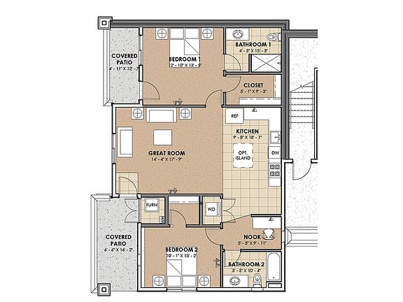 The perfect floorplan! The two bedroom at Ponderosa Parkway boasts of not one, but TWO decks, & a true split floorplan. Upon entry enjoy the open kitchen with optional island which leads into the oversized great room. Two huge windows in the great room allow for views from inside, while the oversized deck is a breath of fresh air. On one side of the home is the master bedroom with a huge walk in closet and private covered balcony. The master bathroom provides privacy and a walk-in shower. On the opposite side of the home is the laundry room, additional bedroom as well as the built in nook area perfect for the home office or reading space. *The Base Square Footage includes 197 SF of exterior space