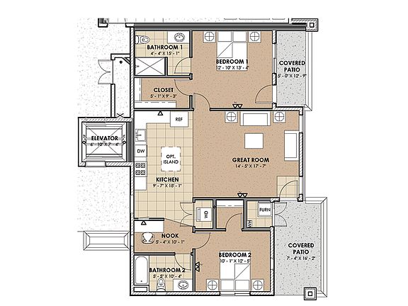 The perfect floorplan! The two bedroom at Ponderosa Parkway boasts of not one, but TWO decks, & a true split floorplan. Upon entry enjoy the open kitchen with optional island which leads into the oversized great room. Two huge windows in the great room allow for views from inside, while the oversized deck is a breath of fresh air. On one side of the home is the master bedroom with a huge walk in closet and private covered balcony. The master bathroom provides privacy and a walk-in shower. On the opposite side of the home is the laundry room, additional bedroom as well as the built in nook area perfect for the home office or reading space. *The Base Square Footage includes 211 SF of exterior space
