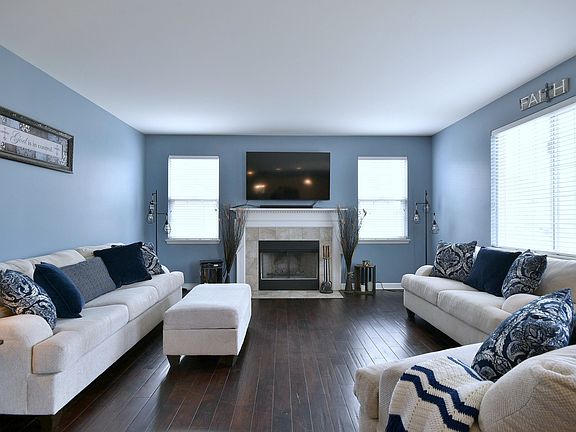THIS HUGE 4 BEDROOM, 2.1 BATH TWO STORY HAS SO MUCH TO OFFER...FIRST FLOOR OFFICE, LARGE LOFT, UNFINISHED BASEMENT, BEAUTIFUL FENCED YARD, AND GREAT LOCATION IN THE ALWAYS POPULAR LAKEWOOD CROSSING NEIGHBORHOOD! ~ Fantastic fully applianced kitchen with 42" cabinetry, center island, recessed lighting, bayed eating area, and exterior door to patio ~ Open concept family room has fireplace and super sharp on-trend decor ~ Spacious living room and dining room combo ~ Tucked away first floor office offers lots of work-from-home privacy ~ Very generous bedrooms including oversized primary bedroom with two closets ~ En suite primary bedroom bath has dual sink vanity, separate shower, and soaking tub ~ Large loft could be 2nd home office, playroom, or hobby space ~ Super convenient 2nd floor laundry with lots of shelving and washer/dryer included ~ 9' ceilings and hardwood flooring throughout first floor ~ Six panel doors ~ Walk-in closets ~ Large windows ~ Attached 2 car garage ~ Lovely backyard oasis has large paver patio, built-in firepit, and charming gazebo ~ Newer roof ~ Great curb appeal ~ Super convenient I-90 expressway access ~ Pool/clubhouse community with sports courts and playground ~ Almost 3,000 square feet of finished living space plus enormous basement waiting for your ideas ~ SO MUCH HOUSE FOR THE MONEY! ~ GREAT POSSIBILITIES...COME AND MAKE IT YOUR OWN!