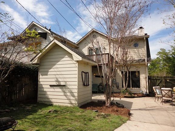Fabulous Townhouse - you don't want to miss this one! Move in Ready - Great entry into the main level has foyer, living room with gas fireplace, formal dining room, kitchen with smooth top stove, microwave, dishwasher, refrigerator,laundry area, one bedroom and half bath. Up stairs is a great view. You have basically two masterbedrooms, each with there own bath. One has a great view from the balcony of the cottage feel backyard, which has two storage buildings. Plenty of parking, plus more!
