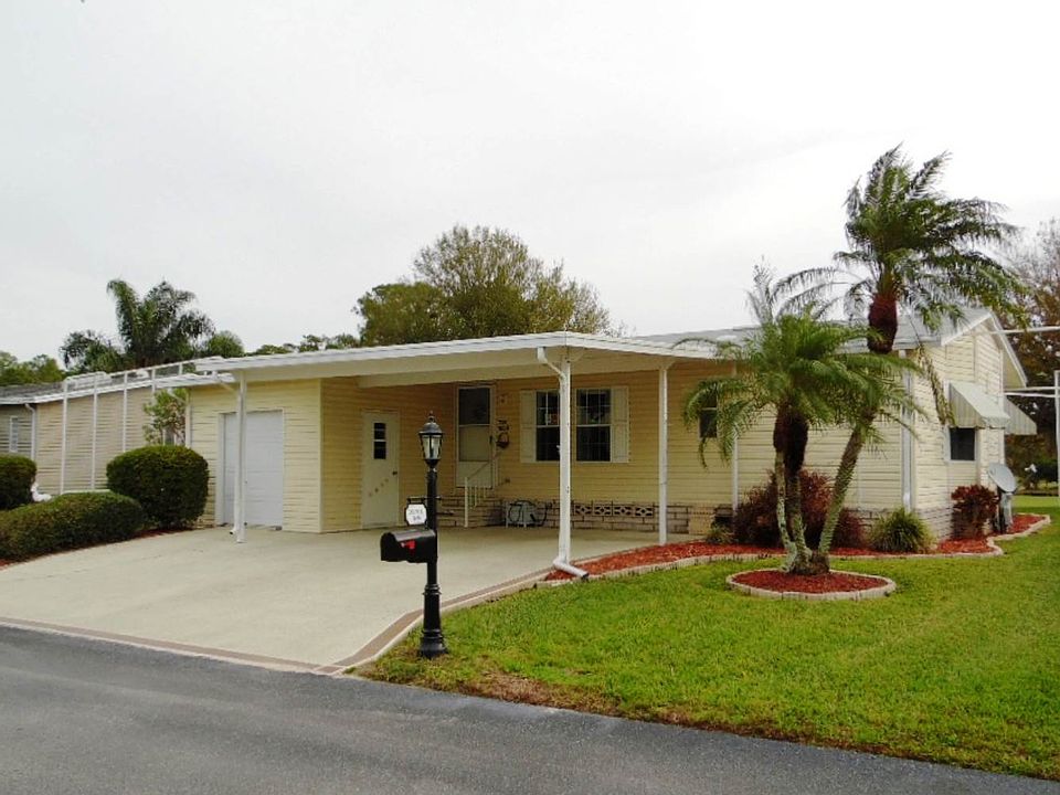 If you like an open floor plan, you will love this 2-bedroom layout! The kitchen wrap around countertop gives it personality plus, and the split plan is always a favorite. Home is being sold fully furnished. Built on a large lot with tranquil views of the pond and golf course! You and the morning sun can enjoy a cup of coffee on your screen room in a quiet place with a pretty view! Purchase includes ONE YEAR FREE GOLF.
