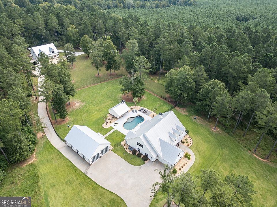 Don't miss out on this Builder's Custom Built home that will check all of the boxes, this custom built, four bedroom, three and a half bath home is nestled on 10.32+ private acres with gated entrance. The home is complete with a open chefs gourmet kitchen with tons of cabinets, quartz counter tops a large island, walk in pantry and breakfast room. Great room with large beautiful stone fireplace with built ins. Master bedroom features brick accent wall and wood trey ceiling with over sized master bath with hers and his vanities, large tile shower and separate soaking tub with huge walk in closet. Split bedroom plan with additional two bedrooms and jack and jill bath. Upstairs features two large great rooms with bedroom and full bath. Covered porch off front and back with beautiful pebble tec saltwater pool with pool house with outdoor kitchen area. A massive detached garage you could park RV, boats, cars etc. with workshop area and loft upstairs. Not to mention at back of property there is an additional guest home that features a garage and unfinished area upstairs with large deck off back. This home is professionally landscaped with tons of sod and lots of concrete for parking. You won't be disappointed with all this home has to offer.