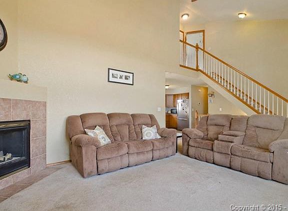 Large 2 story home sits on a corner lot close to Peterson Air force base. As you enter into this home you will notice the large open living room with vaulted ceilings, bright and open windows, and fireplace. To the back of the home is a large eat in kitchen with a brand new range hood. Upstairs the master bedroom has vaulted ceilings, new light fixtures, and a fireplace. There are two additional bedrooms as well as a full bathroom. The upstairs landing overlooks the living room. The fully finished basement has a bath, a bedroom, office, and family room. Tons of storage space with a large hall walk-in closet. Outside the large yard boasts a dog run, area for extra parking with street access via a large gate, and a stamped concrete patio that runs the entire back of the house.