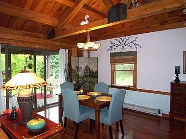 Log Home with 3.29 acres, horse barn, city water & Sherrill electric! OPEN living room, dining room & Woodmode kitchen, 3 or 4 bedrooms, 3 baths, media room, 2 stall garage with half bath & 2 sheds.