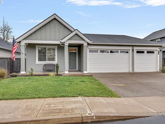 Check out this stunning home located at Campanella Estates in Estacada. This 2020 new construction home offers 4 bedrooms, 2 bath, & 2,070sqft of living space. Inside you'll find an open concept living space, high ceilings, large kitchen w/island open to the living room; perfect for entertaining. Dining area, 3 spacious guest bedrooms 2 of which are separate from primary, huge primary w/tub, full shower, his/ her sinks & large walk-in closet. Garage has costum cabinets & work bench. Fully fenced & landscaped front & back yard with sprinklers, heat pump, and more. Recent add ons include new arborvitaes in the back for extra privacy & bark dust.