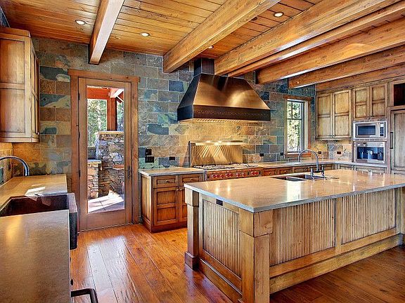 - Exterior features: Stone, Wood