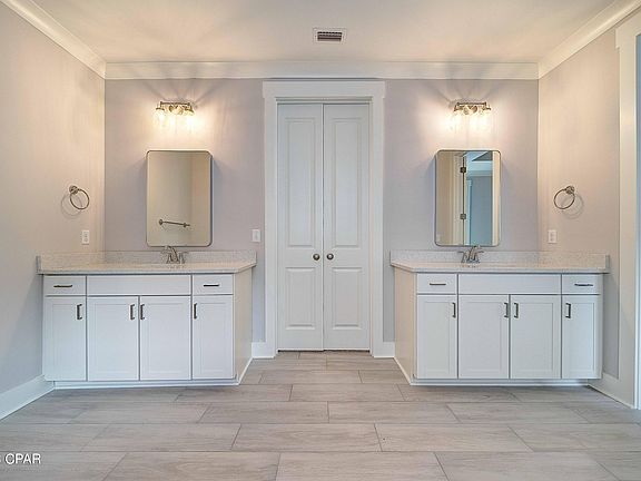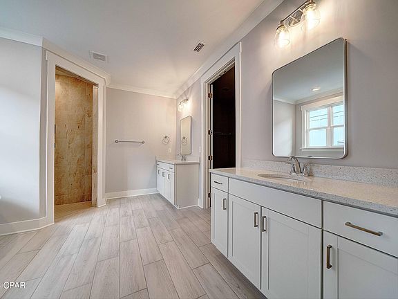 This quick move-in home in waterfront SweetBay is an expansive one-story home with a stunning open floor plan and rear attached 2-car garage. Features include window trim and crown mounding, 8' doors, freestanding tub and tile-to-ceiling shower in the primary bath, stunning kitchen and vaulted ceiling in the large great room. Enjoy the sense of community at Sweetbay with the many parks, amphitheater, multiple resort swimming pools, basketball court, ponds, sidewalks and trail system that leads to North Bay! Marina and Town Center coming soon! University Academy is a top rated K-8 school located within the community, and new home buyers receive priority access!