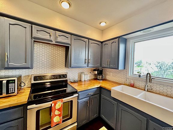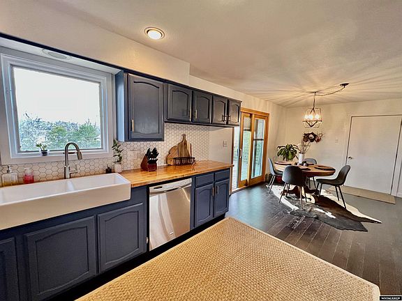 Anyone craving comfortable, private and main-floor living needs to look no further than this stylish and spacious home. Set on a prized corner lot close to everything you could ever need, you will enjoy absolute convenience just moments from Casper College, schools, the golf course and bustling shopping. Three bedrooms and two bathrooms are spread across the main floor plus there are also two bedrooms and one bathroom in the basement. Soft natural light floods the open-concept living spaces with new flooring and fresh paint while the kitchen will be a cook’s dream with a farm sink, butcher-block countertops and stainless steel appliances. A double-sided fireplace warms the basement where you will also find a family room with a wet bar. The long list of extra features includes a laundry room on each level, a range of updates throughout, a two-car garage and RV parking. Hosting guests is made easy thanks to the deck and patio while glorious mountain views provide the ideal backdrop to your new life of leisure.