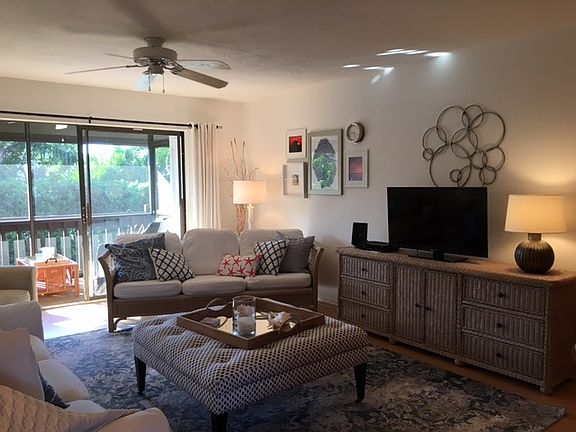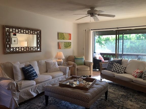 Bright, happy condo within walking distance to Siesta Key beach - voted #1 beach in the US! Thoughtfully decorated with high-end amenities to enjoy a beach vacation lifestyle with open floor plan, fully equipped kitchen, generous master bedroom including large walk-in closet, and private screened-in lanai viewing tropical foliage. Clubhouse, nature trails, tennis court, two pools, barbecue area, and fishing pier. Enjoy the Intracoastal Waterway from poolside and barbecue area - a great place to watch dolphins at play! Convenient, easy walk to shopping, restaurants and entertainment, this delightful condo is located in highly sought-after Castel Del Mare and is a beautiful place to call home. Enjoying a night on the town? Siesta Key Free Ride is a phone call away. Available monthly and seasonally, includes all utilities, cable and Wi-Fi; rental amount varies seasonally. Lives large with pull-out sofa for additional guests. Close to bus line. Vacation Rental/Seasonal Rental