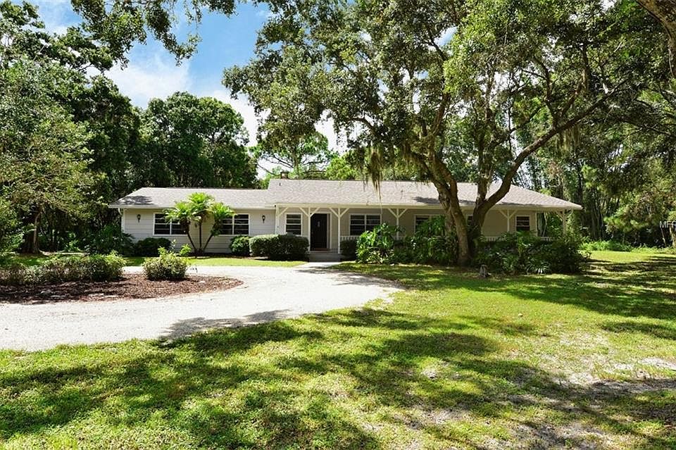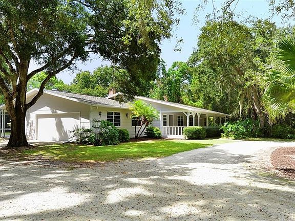 HIDDEN OAKS ESTATES.... Wow, 1 ½ acre lot, so close to downtown Sarasota! Private setting on small cul-de-sac in sought after neighborhood. You will love the setting with large oaks and green space. A circle drive leads you to a large inviting front porch. Great room plan opens to kitchen, den/office or can be a formal living room and separate dining room. Stone wood burning fireplace and built-in shelves highlight the great room. Large sliding glass doors open to huge lanai and pool. Tile floors throughout home. Generous room sizes, inside utility room and oversized 2 car garage. Enjoy entertaining outside on the huge screened porch with 36 x 15 pool (recently re-surfaced). Roof replaced in 2016, newer appliances, recently painted inside and out. Neutral décor ready for you to add your signature. Room to expand and room to roam! Hidden Oaks has a neighborhood tennis court for residents. Beautiful setting, convenient location, country setting but close-in. Close to downtown, 1-75, Benderson Park, Colonial Oaks Park, Doctors Hospital and Big Olaf ice cream in Pinecraft. Please note: elevation is above required, survey and elevation certificate available.