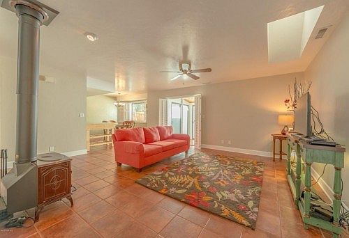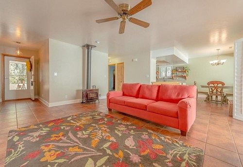 Wonderful home tucked away in the pines of Hidden Valley Ranch! Great native landscaping in front and back of the home. This cozy split floor plan home has tile throughout! Open great room with skylight and wood burning stove to keep you cozy and warm in the winter! Kitchen with custom cabinets, tile backsplash, stately granite countertops, and stainless steel appliances. Large tiled Arizona room to relax in after work or enjoy morning coffee in. Paver backyard to BBQ in or enjoy the cool mountain air. Additional bedrooms and updated bathroom are perfect for guests. 2-car garage to store all your toys in. This cute home in the pines is ready for you to move in!