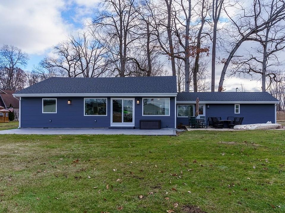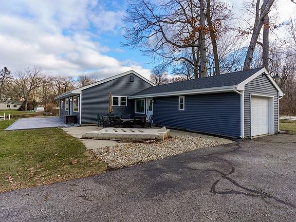 Spectacular Location On Lake James! This totally remodeled home is situated on a spacious half acre, channel front lot with close proximity to first basin of Lake James, the golf course, shopping, restaurants, I-69 and so much more. The exterior and interior of the home was completely updated in 2021. A nice open concept floor plan featuring all new luxury vinyl plank flooring in the main living areas & bedrooms with tile in the bathrooms and fresh paint throughout. The living area provides access to the lakeside stamped concrete patio and great views of Lake James. The brand new kitchen boasts an island breakfast bar, new cabinets, new stainless Samsung Smart Appliances Package, granite counter tops, and a stainless farmhouse sink. There are three roomy bedrooms, two all new bathrooms, a laundry room with new washer & dryer plus a 10x13 breezeway with tile flooring that leads to the 14x20 attached garage and to the lakeside patio. The master bathroom has a heated floor, granite vanity top, all new fixtures, a separate tub and a tile walk-in shower. The guest bathroom has a walk-in tile shower, granite vanity top and all new fixtures. The newer mechanicals include a tankless water heater. There is an awesome sandy association beach for your use. A great spot to enjoy sunsets and the 4th of July fireworks display over the lake. The new vinyl pier is included. This home is move in ready and waiting for summer fun!