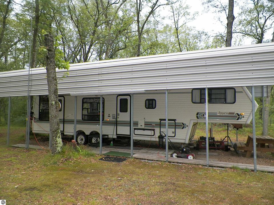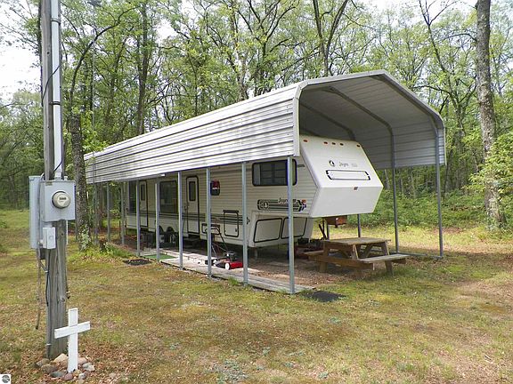 Up north get-away! Beautiful building spot! Wooded parcel with septic, well, and electric. 1988 Jayco camper included and is all hooked up! Nice sized shed and carport too! Come sit by the fire, watch the wildlife, and enjoy life!