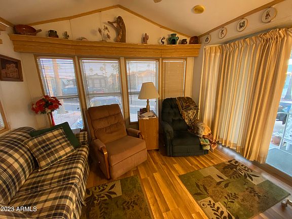 Here is your affordable winter home in the best 55+ park in the valley! Enjoy the Arizona room with attached inside laundry / storage!