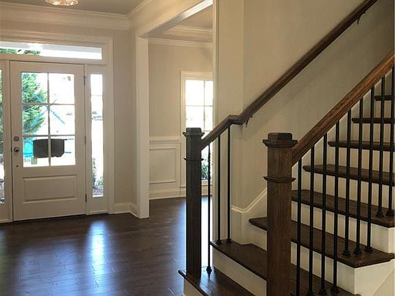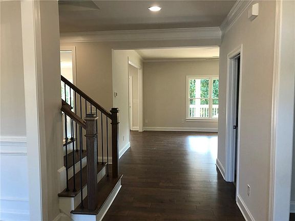 Garrison floor plan 5 bedrooms 4 full baths, Hardwoods on main include formal living/dining/family/kitchen and office. Amazing kitchen has white cabinets, upgraded granite, stainless dbl oven pkg, farm sink and pendants lights over large island. Full bath on main with 12x12 designer tile, great space behind kitchen can be office, bedroom or play room. Hardwood stairs lead to 4 bedrooms up, large master with large WIC, 12x24 designer tile, semi frameless shower surround and 6ft tub. Bedroom with private bath, 2 bedrooms shared bath. Large laundry with 12x12 tile. New construction in established community in desirable east cobb. Ready now!! HOA is not mandatory I believe everyone does participate