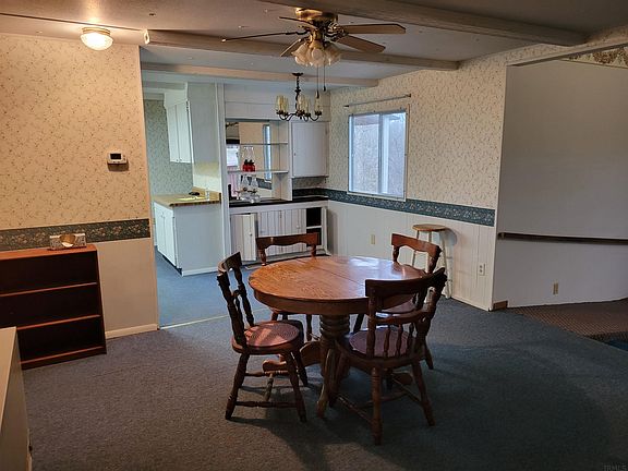 WELCOME HOME TO YOUR AFFORDABLE 3 BEDROOM, 2 BATHROOM MANUFACTURED HOME! THIS HOME HAS PLENTY OF GARAGE AND OUTDOOR STORAGE SPACE. ENTER THE FRONT DOOR FROM YOUR COVERED PORCH TO AN OPEN CONCEPT LIVING ROOM, DINING ROOM, AND KITCHEN. THE KITCHEN HAS SEVERAL CABINETS WITH BUILT-INS AND COMES COMPLETE WITH OVEN AND REFRIGERATOR. THE LIVING ROOM HAS AN OUTDOOR DECK ATTACHED FOR EASY ACCESS TO THE GARAGE/POLE BARN. THERE IS ALSO A LAUNDRY AREA THAT COMES COMPLETE WITH A WASHER AND ELECTRIC DRYER. THERE IS A SECOND DECK AREA FOR ADDITIONAL SEATING AND/OR RELAXATION. THE ONE CAR GARAGE WITH LEAN-TO IS LOCATED IN FRONT OF A SHED/CHICKEN COOP. THIS HOME SITS ON APPROXIMATELY 1.2 ACRES. THE UTILITY COMPANIES ARE: ELECTRIC- DAVIES MARTIN COUNTY REMC AND WATER- SOUTH LAWRENCE. THIS HOME IS A SINGLE WIDE THAT HAS BEEN ADDED ON TO AND A ROOF INSTALLED OVER THE ENTIRE HOME. SELLER IS SELLING AS-IS AND ONLY CONSIDERING CASH OR CONVENTIONAL OFFERS SUITABLE FOR SINGLE WIDES.