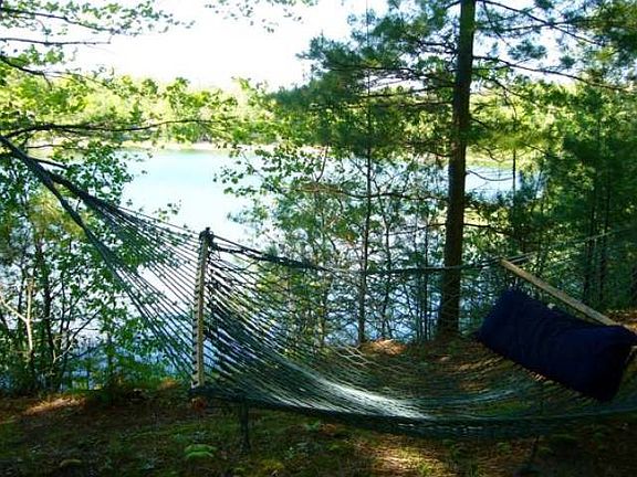 Sweet log cabin with 150 feet of sand frontage on Bass Lake. In addition to a truly great front porch this cabin comes with 1.8 heavily wooded acres, a separate grilling deck with built in benches and an oversized 3 car log sided garage. New drilled well in 2014. Inside there is a lot of wood, a stone chimney, wood burning stove, built ins in the bedrooms and a spacious loft with more built ins.