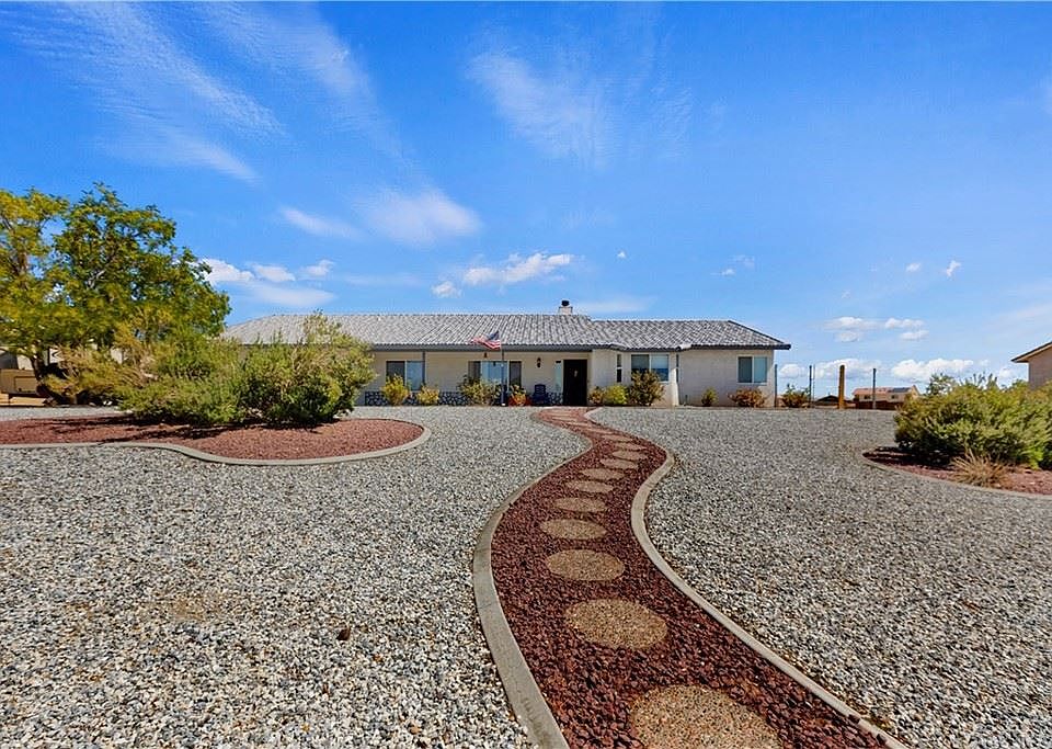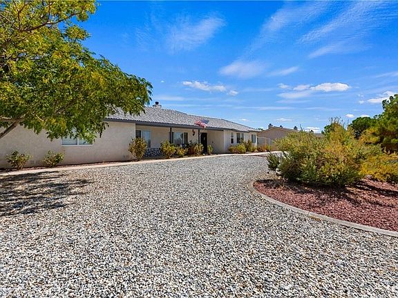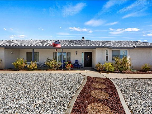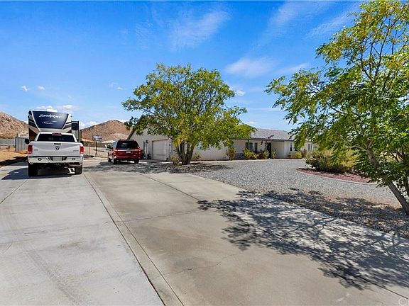 Located within a quiet neighborhood in the foothills of Apple Valley with providing you with terrific views of the valley, city lights and the mountains beyond, this cozy ranch style home offers a uniquely designed floor plan for easy living. Casual front porch is ideal for watching the morning sun rise. Over sized Great Room with high ceilings and wood burning rock fireplace creates a warm cozy atmosphere for watching the big game, your favorite movie or just reading a book. Open to the kitchen, breakfast nook and more formal dining area it gives that open concept living that offers opportunity for great times. Kitchen has a breakfast bar w/ stools to add to ability for conversation. Over sized kitchen has been updated with quartz counters, full tile backsplash, large farmer's sink, new stainless steel stove top, oven, micro-wave and dishwasher to make those kitchen chores easy. Enjoy your coffee and breakfast in the breakfast nook. For more special occasions, the Dining Room with its built-in china cabinet has ample space or an extendable table. With 5 BR and 3 BA, there is ample space for family and guests. New engineered hardwood floors or tile throughout for easy care. Relax poolside or in your spa in your private pebble tech salt water pool with new sand filter or BBQ on your covered patio. Low maintenance desert landscape gives you more stress free times. Oversized drive provides ample parking for your RV and desert toys or those extra cars. This home has easy access to the I-15 and High Desert shopping. It is a quick trip to Las Vegas with National parks not much further. Boating is available at Silverwood Lake and ski resorts are nearby. Trampoline stays.