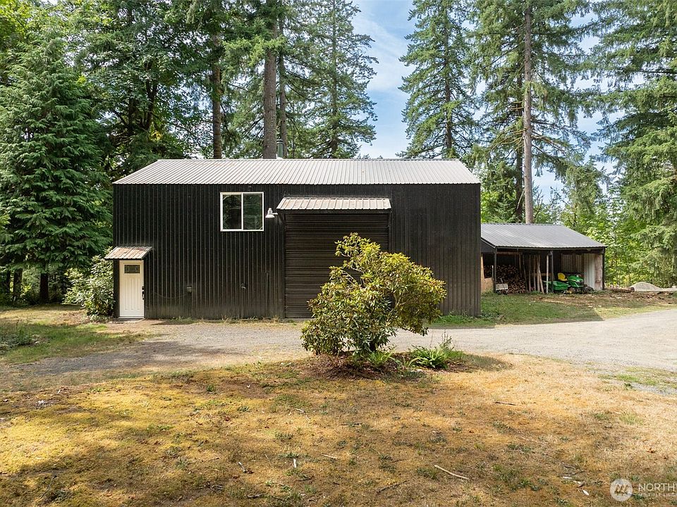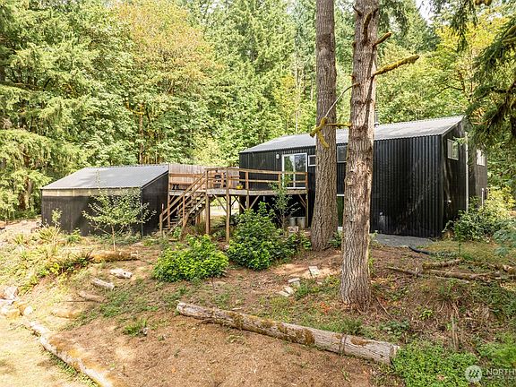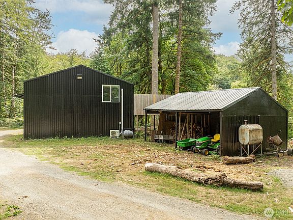 Rarely do properties like this come available. This unique offering allows you to live comfortably in a one bedroom apartment with 2 living areas, kitchen, bathroom and garage space while building your own custom home OR simply embrace the beauty of minimalist living with direct access to nature. The property features a flat building site, utilities in place, and a 4-bedroom septic ready to go along with a separate storage building or workshop . Located in a peaceful gated community on 5 private acres, you’ll enjoy your own ponds, walking trails, a stunning garden, and plenty of space to roam and explore. Let your imagination run wild, this is your chance to truly experience the magic of Pacific Northwest living.
