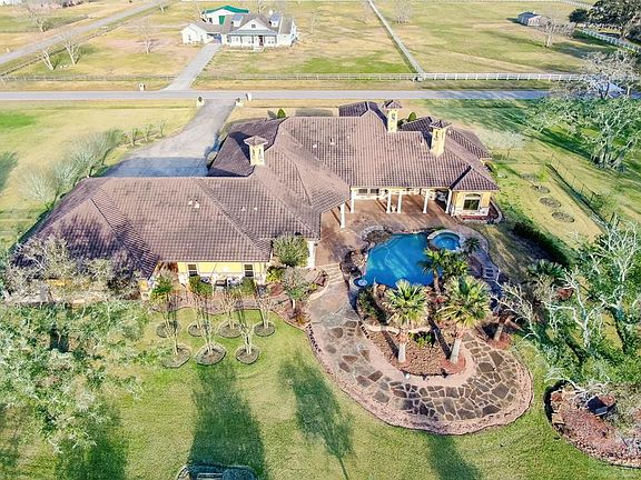 Gorgeous custom home situated on 5 acres with a resort-style pool, whole-home generator, and a casita for your guests. This luxurious home features GE Monogrammed appliances, 2 living areas, a formal dining room, wet bar, and wine room, 3 fireplaces, built-in surround sound inside & out, a fully fenced back yard with Montage commercial-grade fencing, engineered wood flooring, travertine tile, a spacious office, and a spectacular primary suite overlooking the pool. The primary bath is a spa-like retreat with a walk-through shower, a large tub, and enormous walk-in closets. This home was built for entertaining both inside and out. The main house boasts 3 large bedrooms with ensuite baths. The attached casita has a huge room that can be a bedroom, game room, or workout room. It also has a kitchenette and a gorgeous bath.