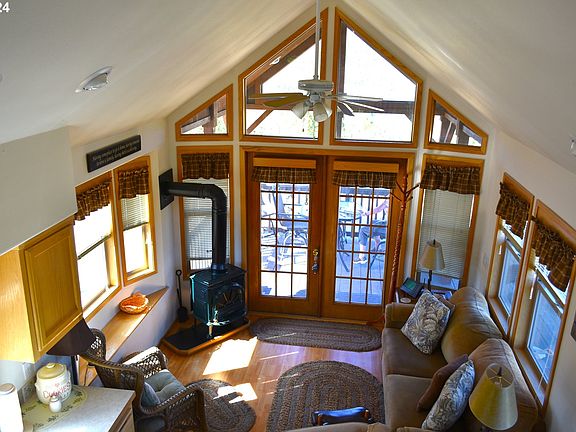 Beautiful country setting with this cozy (2006) 2/1 Park Model A Frame cabin overlooking the valley below. Off grid with 15,000 watt propane generator, 12 solar panels on 3 strands, 3000 watt wind generator, windmill, battery bank, instant hot water and CastHeat wood stove. Irrigated 2+ acre grass pasture (Buyer/Broker to verify water right usage.) 300 ft of West Branch of Bridge Creek frontage. Pole barn/hay/equipment shelter, small corral, tool shed and 60 GPM domestic well. Attached storage area houses battery banks, sink, washer and dryer. Nicely treed with juniper and sage. Fenced on 3 sides. BLM close. 2800 elevation. Can include all appliances and most furnishings. No farm or irrigation equipment included. Located off Hwy 26 with good dirt road access to property line. Here is your turn key hunting hideaway, vacation rental home or full time residence. Inquire within!