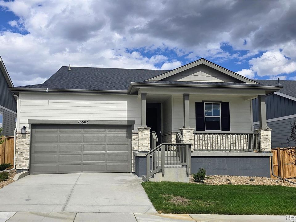 New Construction – Ready Now! Built by America's Most Trusted Homebuilder. Welcome to the Boulder at 16503 W 93rd Way in Trailstone City Collection! This spacious single-story home blends comfort and style. Off the foyer, two private bedrooms share a full bath, while a nearby flex space is perfect for a study or playroom. A convenient half bath and laundry sit near the garage entry. The kitchen shines with abundant cabinetry, a walk-in pantry, and a large island overlooking the open dining and great room—ideal for gatherings. The private primary suite offers a spa-inspired bath and walk-in closet. The included basement adds storage. Discover Trailstone in Arvada, CO, where mountain views meet modern living. Enjoy spacious backyards, planned amenities like a pool and pickleball courts, and easy access to Boulder and Denver. Additional Highlights Include: Fireplace at great room, covered outdoor living, and 8' interior doors. Interior photos are for representative purposes only. MLS#1920071