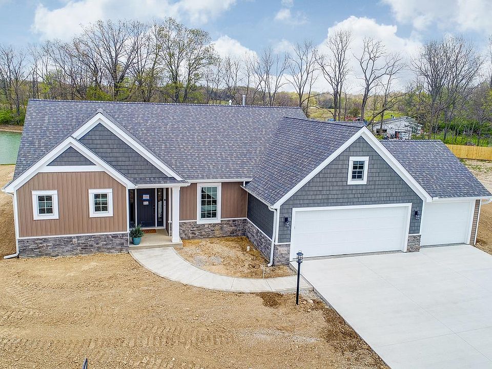Come and see this fantastic custom built new Bob Buescher single story home in NWAC schools! Located in The Quarry, just off of E. Cedar Canyon Rd., this open concept plan provides plenty of space to relax, entertain, and create lasting memories. The great-room is open to the kitchen and displays an attractive cathedral ceiling, elegant fireplace, and expansive windows with mutton grills. The custom gourmet kitchen is anchored by a grand 4x7 quartz island, quartz counter-tops, custom cabinets, beautiful backsplash, and easy access to a large walk-in pantry. Tucked away for a private retreat, the master bedroom displays 9' high ceilings with crown molding. The master bathroom exudes elegance and relaxation with the beautiful walk-in tiled shower, dual vanities, private water room, and an oversized walk-in closet. The laundry area is close by the master-bedroom and has ample counter space. Bedroom's 2 and 3 are spacious and have nice sized closets. The outside covered porch provides a space to relax in the shade and enjoy the scenery of the beautiful water lot. There is also plenty of space in the oversized 796 sq ft 3 car garage, which has pull-down stairs for attic access and additional storage. This home's space and open layout has so much to offer and is located close to I69, Parkview North, restaurants and shopping!