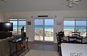 Listing agent: Scott Ingraham, Call 850-249-7355 for information. How would you like to have the beach as your backyard? Wake up everyday to a beautiful and unobstructed view of the Gulf of Mexico from this waterfront home. Great open floor plan, each bedroom has a private bath and there is also a half bath. The home was recently updated with new flooring, appliances, fixtures and more. Catch some rays while lounging on the large beachside deck or walk down to the sugar white sands and enjoy some sun and surf. The home is conveniently located within walking distance of Pier Park, a great family destination with restaurants, specialty boutiques, name brand department stores and a movie theater with 16 screens including an IMAX. There's also an amphitheater where concerts and other events are held year round. You'll have a front row seat to everything! Like to fish? The county pier is also a short walk away. It's time to put your toes in the sand and this is just the place to do it! All info is approx and must be verified by Buyers if important.