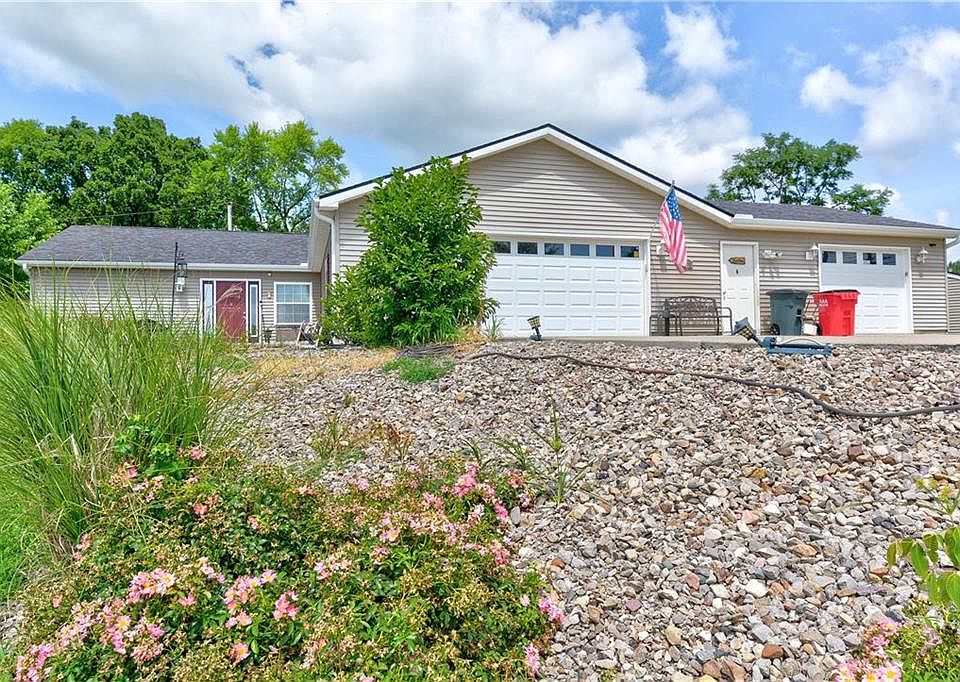 1 level living in this spacious, custom built ranch home w/possible RENTAL INCOME! 3 ft doors! 2 BIG Master Suites with Walk In Closets! 2 family rooms! 3rd room is used as an office but fits a queen bed & end tables! Granite Counters and stainless steel appliances! 3 car garage with stairs to basement! Huge FULL unfinished basement w/separate entrance between garage spaces. Egress window, space for 2-3 bedrooms, family rm, and stubbed for full bath! Perfect to finish and rent! Also a detached garage for storage!