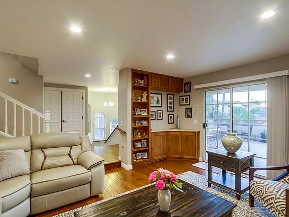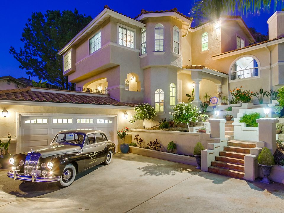AMAZING VIEWS with multiple decks and patios to enjoy them all!! Spanish style home perched above the San Diego Country Estates. An entire Penthouse floor for the primary bedroom with multiple walk-in closets. Entertainers kitchen that opens to living room and side yard with jacuzzi. Fully fenced in dog run yard and access to hiking trails off the top of the property. Built-in drip irrigation system to fruit trees and seasonally blooming flowers throughout the property. The oversized 2 car garage and long driveway are great for the car enthusiast.