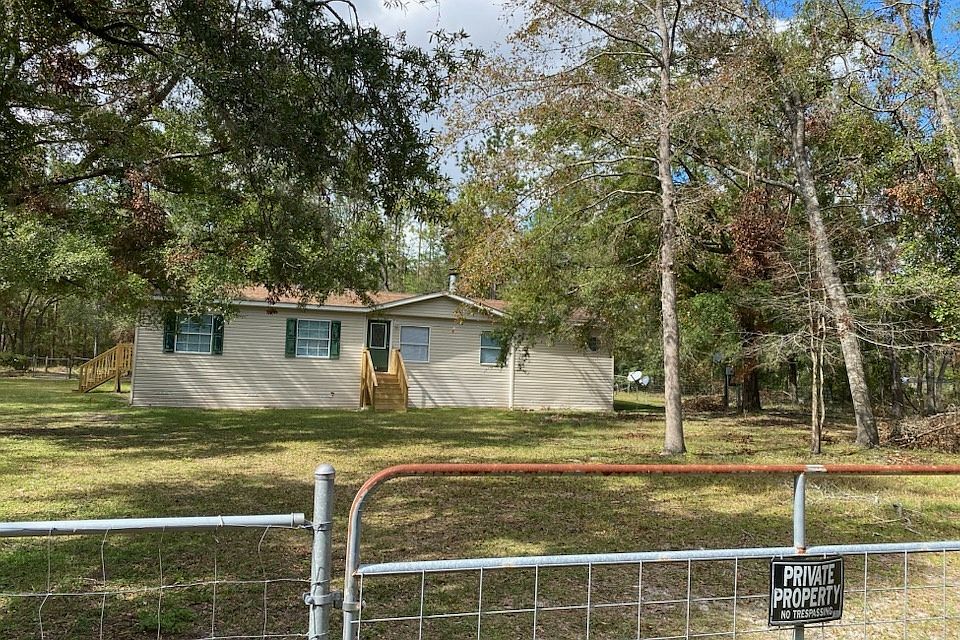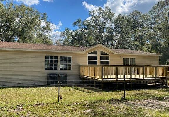 Large triple wide manufactured home on .9 of an acre. This Skyline has it all from rounded corners to large windows. Living room has a fireplace, Master bedroom with extra sitting room, Large bathroom with walk in shower and garden tub. Large Kitchen with island. Large open back deck to enjoy the outdoors on. There is also a shop/garage in the back with 1 roll up door and a walk in door. Close to Suwannee River.