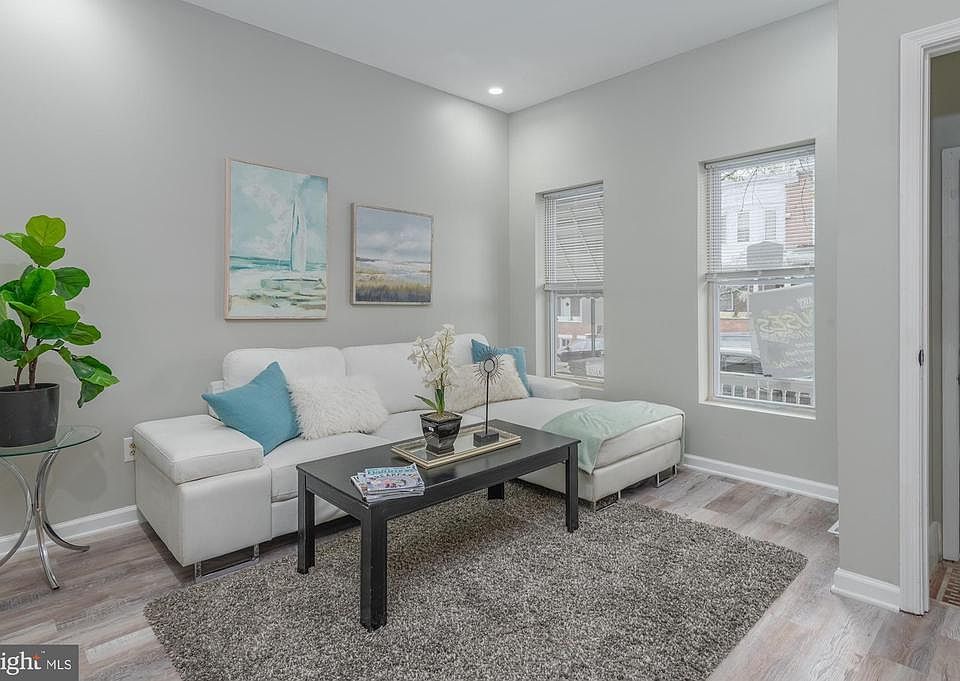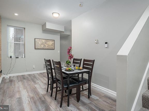 Nicely updated porch-front home ready for a new owner. First floor features a large living room with exposed brick, all new flooring throughout, separate dining room, and a trendy kitchen with blue cabinets, granite counters, and stainless steel appliances. Second floor is spacious with three large bedrooms and two full bathrooms, all new carpeting and new paint throughout. Lower level is perfect for storage. Ground rent to be verified by the buyers.