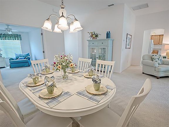 WHAT AN OPPORTUNITY! This stuning EXPANDED Whispering Pine Model ( with inside utility room! ) is being sold completely TURNKEY! Bring your clothes and toothbrush and start living The Villages lifestyle. This beauty is perfectly located between town squares! Once inside you will be amazed at how open and bright this home is. Large comfortable living room that is open to the dining room. The kitchen is complete with wood cabinets, loads of storage, breakfast bar and a spacious dinette to enjoy your morning coffee before you start your fun filled days in The Villages. The master is king sized with a large walk in closet and private bath with dual vanities and shower. There is a comfortable guest bedroom and bath and then a den/office/family room or it could be used as a 3rd bedroom (without a closet). And...it is completely turnkey! Everything you need is already here. Quality furniture and decorating will make you proud to call this house your home! Yearly Maint Assessment is $629.82 The Yearly Bond Assessment is $1,696.51 The Bond Balance is $18,451. Call us to see this great home today! Taxes shown include all assessments.