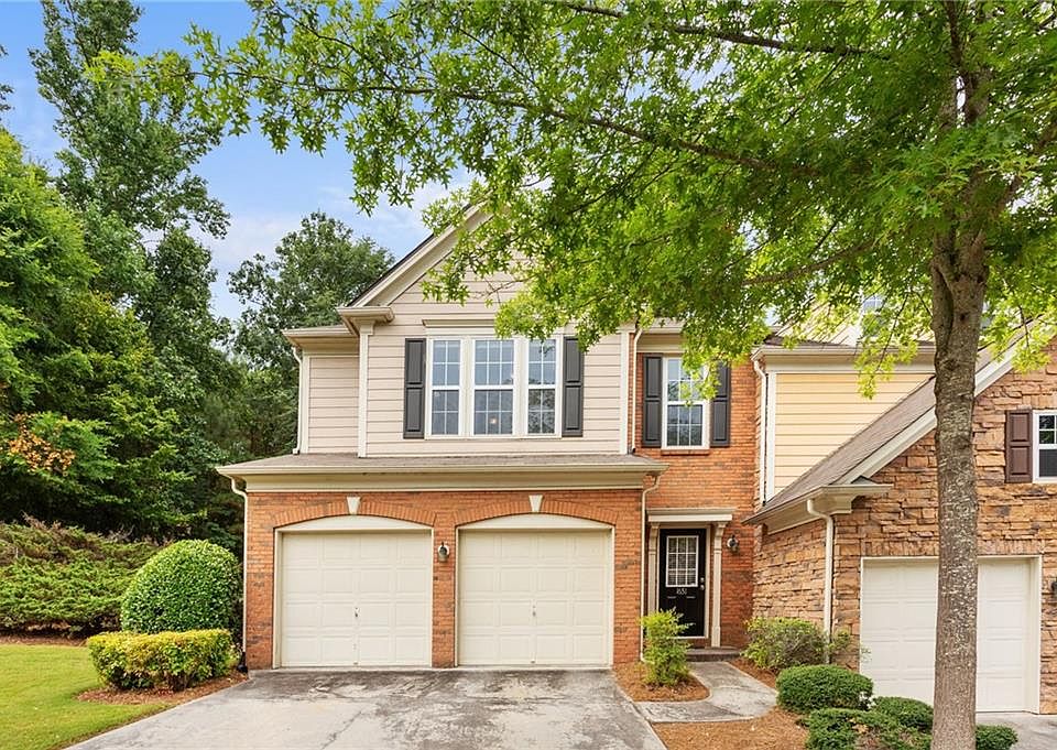Don’t miss out on this fantastic end unit townhome in a prime location with numerous recent improvements: new roof, new water heater, new HVAC, new dishwasher and microwave, new garage door opener, and remodeled bathroom! The level and landscaped lot is situated at the end of the street and right next to overflow parking, so you’ll have plenty of room for guests. As soon as you enter the bright and inviting two-story foyer, you’ll notice special details, like hardwood floors on the main level, wainscoting and upgraded trim, and iron spindles on the stair rails. The family room is accented by a beautiful gas log fireplace with a marble surround. It is flanked by two windows that overlook a private wooded area. The dining room has sliding glass doors that connect to the patio and a pass-through window that connects to the kitchen, making entertaining a breeze. The kitchen is spacious and features cabinets with a warm stain, solid surface counters, a tile backsplash, and stainless steel appliances. A powder room rounds out the main level. Upstairs, you’ll find the oversized primary suite with vaulted ceiling and ensuite bathroom with dual vanities, separate soaking tub and step-in shower, and a great walk-in closet. Two additional bedrooms share a full bath, and the laundry room is conveniently located just outside the bedrooms. The community features a sparkling swimming pool and the sidewalks make it easy to take an evening stroll. The location of this townhome can’t be beat - just minutes to the area’s greatest attractions, such as the Silver Comet Trail, Smyrna Market Village, Truist Park and The Battery, and Cumberland Mall, plus enjoy quick and easy access to the interstate and tons of local shopping, dining, and entertainment options.