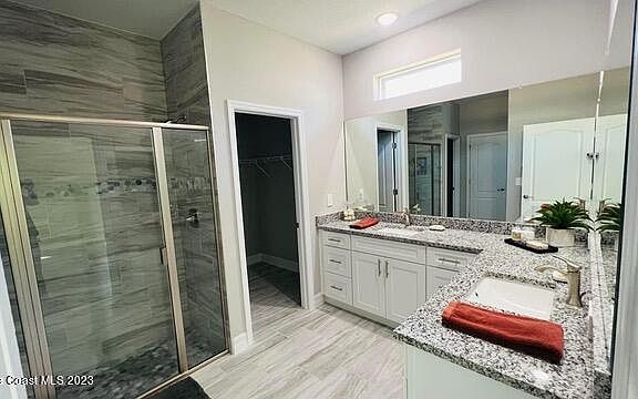 NO HOA. This 4/3 home was designed to meet modern needs including a great-room to facilitate interaction between family members and or friends and a large luxurious master-suite. Another criteria for the modern home design in Florida is having a good sized Lanai that is located next to the kitchen and living room. This combined area expands the size of the great room for participating in indoor/outdoor living that is very popular in Florida. The Master Suite is large (450 sq. ft.) with a 10 ft. Raised ceiling. There are 2 walk-in closets and a large glassed in shower. The bedroom of this suite has room for comfort chairs to relax in. This house is customized with granite countertops throughout and the ceilings are all raised. Cabinets are 42 inch shaker style with up-graded hardware. Appliances are stainless steel including a side-by-side refrigerator with a water dispenser. Plus a washer and dryer.