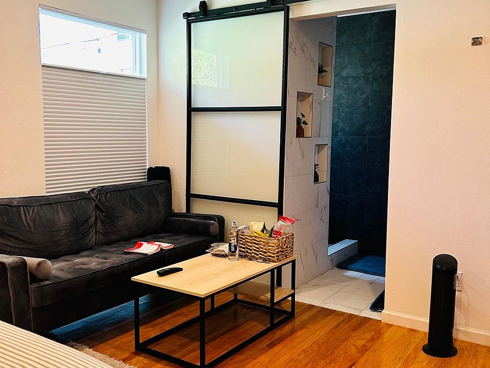 Newly renovated bedroom with private attached bathroom with stone floor walk-in shower. This room is on the bottom floor of a 2 story home. The second level of the home is only over the garage, so there is no upstairs noise. The bedroom is tucked at the back of the house with about 250 sq ft in total, feels roomy, open, and bright, and has hard wood floors. It can either come furnished or unfurnished, depending on the needs of the incoming tenant. There is a shared living room, dining room, kitchen, and washer and dryer. The home is located in a quiet suburban neighborhood with friendly neighbors ranging from young families to empty nesters, and minimal through traffic. The housemates are quiet, considerate, laid-back, and respectful, and clean up after themselves when they use the kitchen or shared spaces. We are looking for someone like-minded who is comfortable with and enjoys being part of a shared home. Reach out if you are interested. We look forward to hearing from you! We share the lease for any interested parties to review. Some terms include: -No smoking in the home -Off-street parking in front of the home, unassigned -Quiet hours after 9pm M-F -Each tenant shares cleaning responsibilities for common areas -Inform landlord if there will be a visitor staying for more than 5 consecutive days