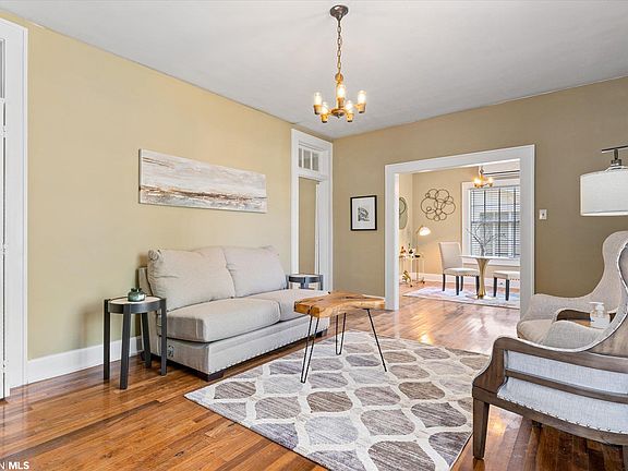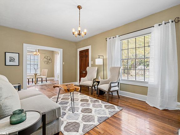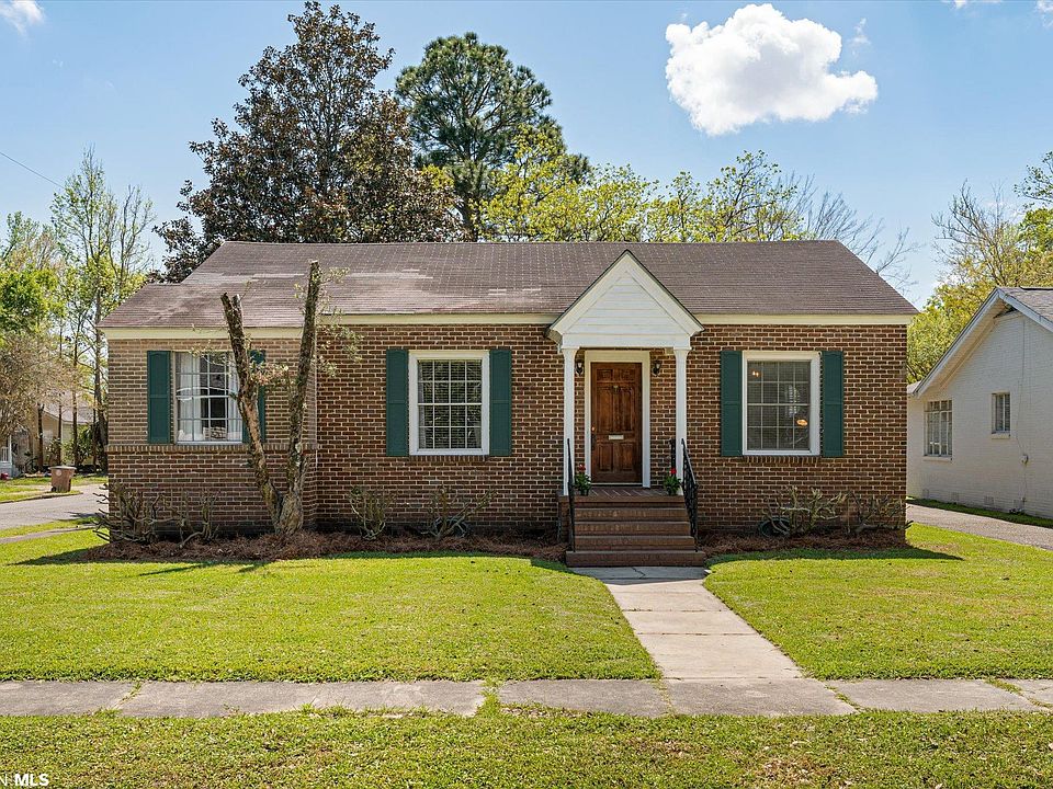 Darling updated brick home in the Leinkauf Historic District. This solid brick home was built in 1930 and has historic flourishes like cast iron pilasters, ornate vents and iron railings; all of which, were installed by the original builder and were reused from other Old Mobile homes. Home has hardwood floors throughout, plaster walls, charming built-ins and a lovely mantle. The interior features one floor living with a cozy living and formal dining room, eat in kitchen, two bedrooms with a Jack and Jill bath. plus an additional 3rd bedroom that also could be a perfect office. Home fronts the entrance to South Monterey street and is on a corner lot. Home has recently been renovated (2022) with new baths, light fixtures, updated kitchen and new HVAC. Freshly painted throughout. Garage has a new roof, garage door and roof. Wonderful updates in a great midtown location. Don't let this one get away, call to book showing, today. Listing company makes no representation as to accuracy of square footage or property conditions: Buyer and buyer's agent to verify all information deemed important.