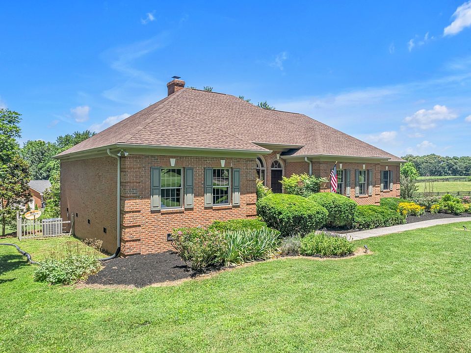 Welcome to 1651 Lawrence Ln, a beautifully constructed brick home nestled on a 2.21-acre plot. This property combines peace of the countryside with the convenience of urban living, being just 5 minutes away from the town center. Boasting an impressive 3,143 square feet of interior space, this property features three bedrooms, a large study room and 2.5 bathrooms, making it perfect for families or those who appreciate a spacious environment. The heart of this home is the living room, where 12-foot ceilings create a sense of grandeur, and a gas fireplace inspires gathering and conversation. The large study offers a quiet retreat for work or contemplation. The primary bedroom offers an en suite bathroom that features a whirlpool tub and separate shower, designed for ultimate relaxation. Step outside to enjoy the outdoor covered deck and large patio, ideal for entertainment or soaking into the serene surroundings. The only missing ingredient is you.